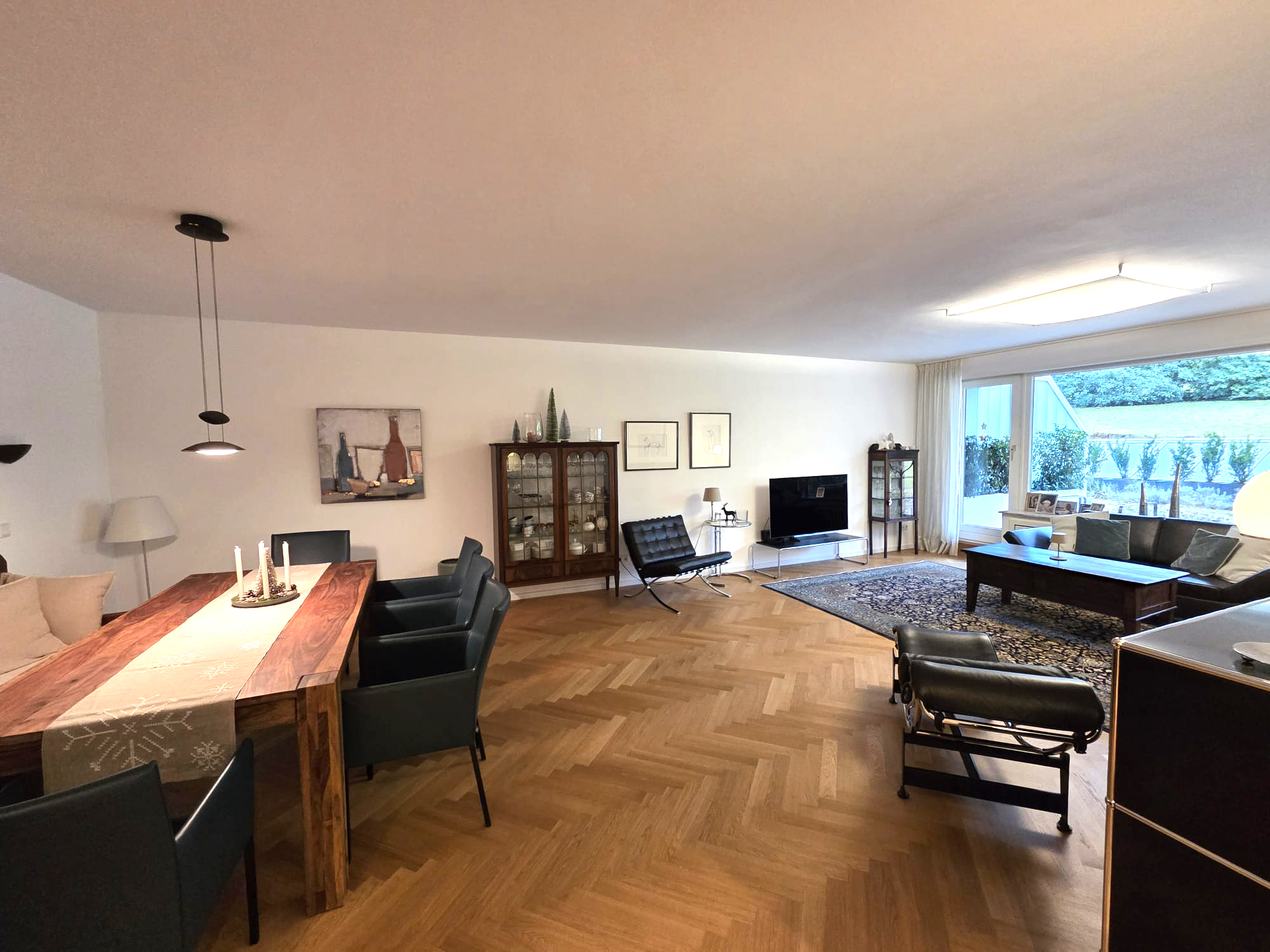 Entdecken Sie diese großzügig geschnittene, wunderschön gestaltete Erdgeschosswohnung, die im Jahr 2022 vollständig saniert wurde.
